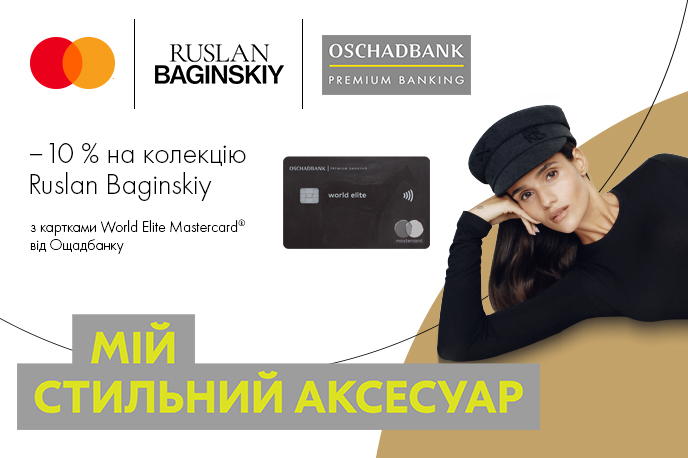 *ВАЖЛИВО: для отримання знижки в ЦУМі необхідно під час оплати повідомити промокод «Mastercard_Baginsky10» та розрахуватись карткою Mastercard® World Elite Ощадбанку.