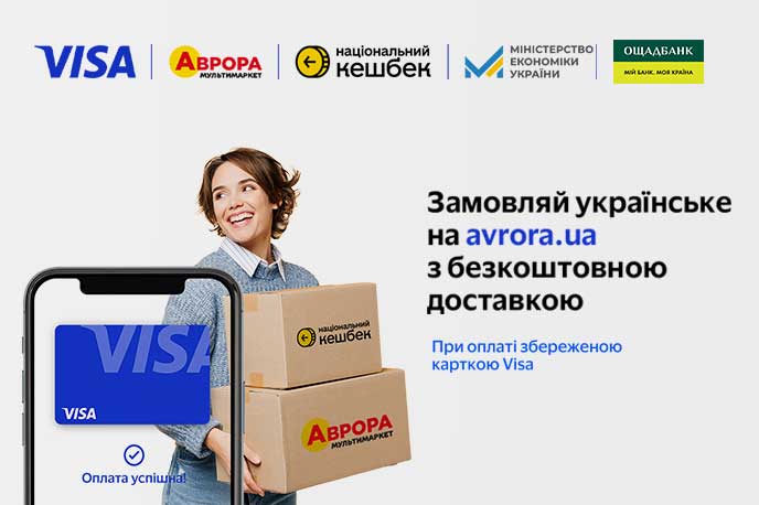 Замовляйте в інтернет-магазині avrora.ua на суму не менше 200 грн одним чеком, де в переліку обов'язково має бути хоча б один товар, що бере участь в програмі «Національний кешбек», оплачуйте збереженою карткою Visa від Ощадбанку – та отримуйте безкоштовну доставку!