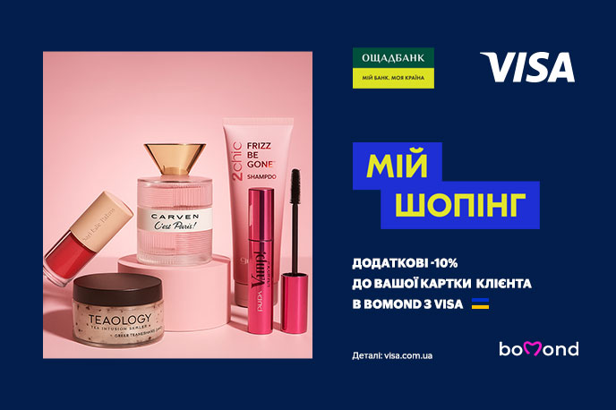 У Bomond кожен візит — не лише про новий засіб чи флакон улюбленого аромату. Це про настрій, турботу, ритуал, що починається з приємної покупки. А тепер — ще й про приємний бонус. Розраховуйтесь преміальною карткою Visa Infinite у будь-якому офлайн-магазині Bomond та отримуйте додаткові 10% знижки до клієнтської картки.