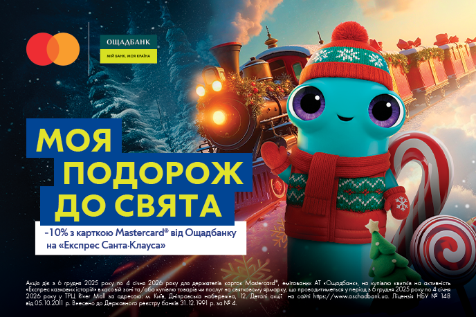 - Оплатіть квиток на «Експрес Санта-Клауса» карткою Mastercard® від Ощаду