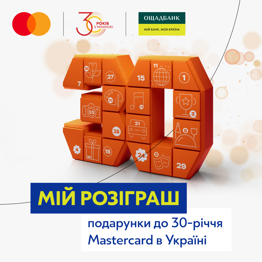Вже 30 років Mastercard в Україні робить щоденні оплати зручнішими та відкриває нові можливості для українців. На знак подяки за довіру Mastercard запускає масштабний розіграш із унікальними подарунками.
