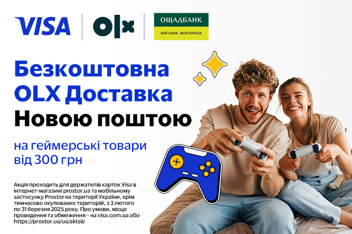Акція діє при оплаті товару онлайн на суму від 300 грн у підкатегорії «Ігри та ігрові приставки» на сервісі OLX.UA збереженою карткою Visa на територіїУкраїни, крім тимчасово окупованих територій, з 3 лютого по 31 березня 2025 року.