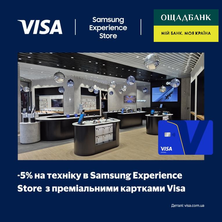 Клієнти Ощадбанку з преміальними картками Visa можуть отримати знижки 3% або 5% на покупки в Samsung Experience Store.