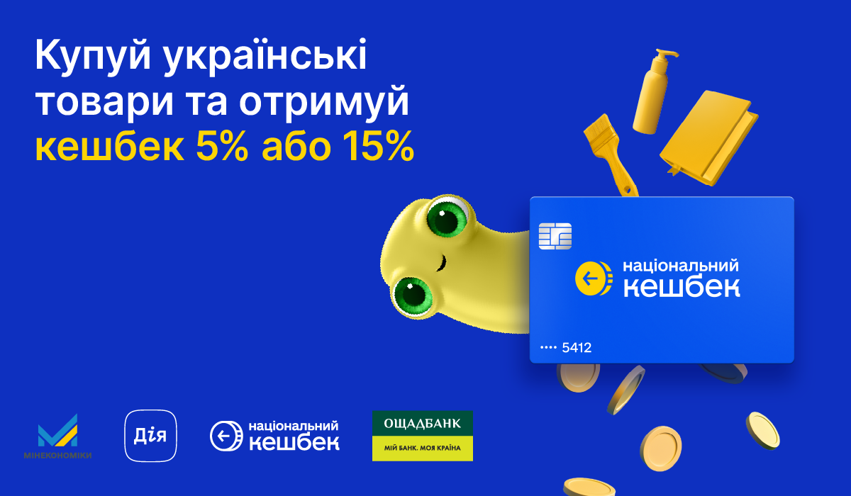 - 15% кешбеку нараховуватимуть на товари українського виробництва в категоріях, де частка імпорту в споживчому кошику перевищує 35% (непродовольчі товари та деякі макаронні вироби і крупи, а також тверді та м’які сири тощо);